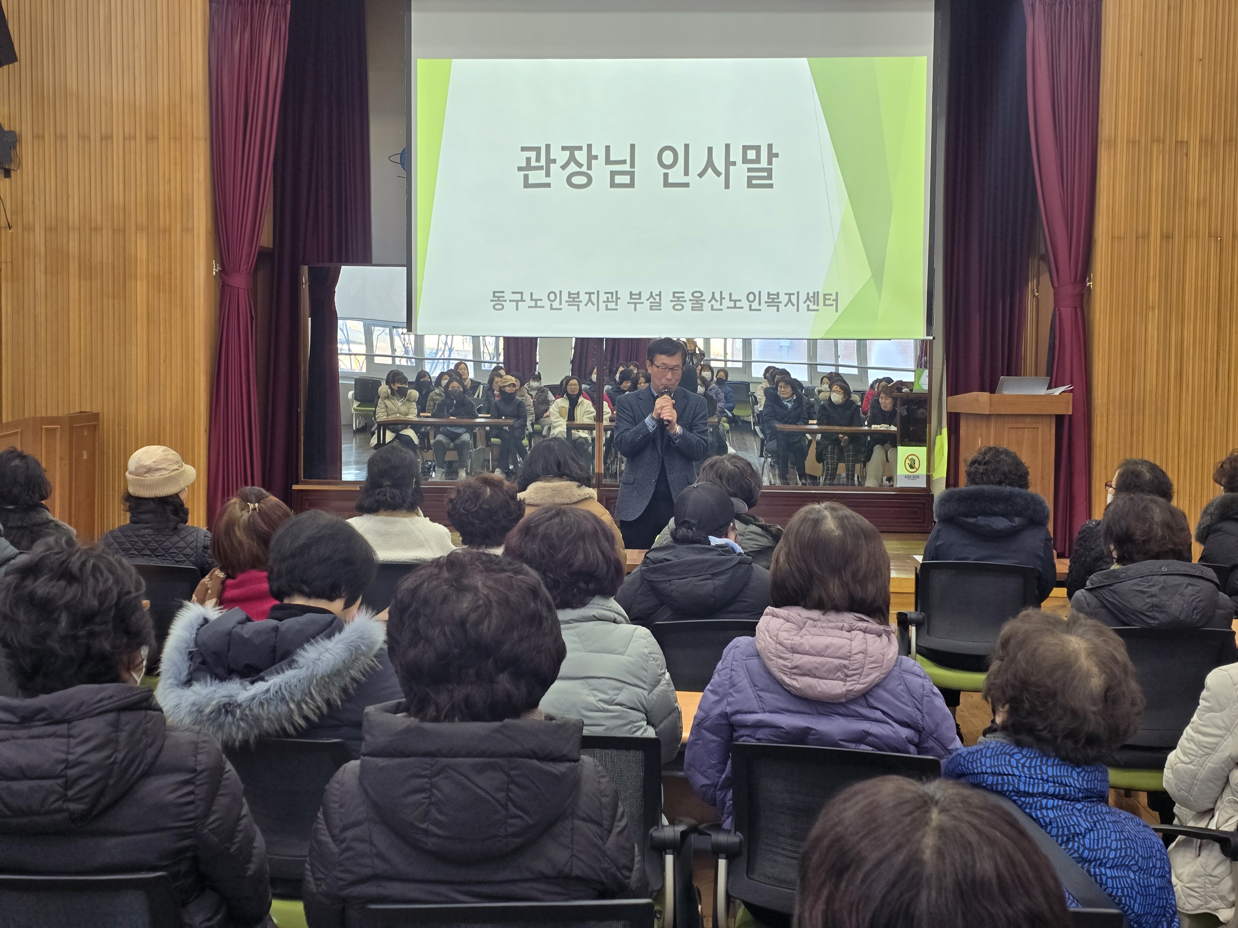 복지관 이야기 울산광역시동구노인복지관의 다양한 소식을 전해드립니다. [동구] 2025년 상반기 '방과후 동노복 - 하나 둘 셋!' 2025-06-30 [동구] 한국동서발전(주) 설 명절 후원물품 전달 2026-02-12 [동울산] 직원 운영규정 교육 및 관장님 인사말씀 2026-02-04 [화정] 후원 물품 뜨개 방석 전달 2026-01-12 [전하] 1월 힐링시네마 실시 2026-01-22 [동구] 전문연계상담 _1월 산재상담 실시 2026-01-22 [화정] 2025년 겨울나기 꿀차 지원 사업 2026-01-12 [전하] 1월 이미용 서비스 '감성 미장원' 2026-01-13